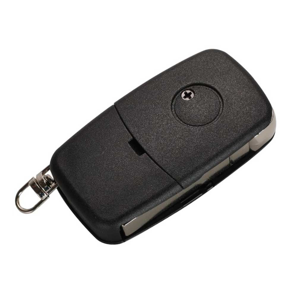Fekete színű, 3 gombos Audi bicskakulcs, kulcsház. Ideális megoldás a kopott, sérült kulcs, illetve kulcsház cseréjére, mely egyszerű és gyors folyamat, nem szükséges hozzá szakértelem. Gyárival megegyező kialakítású, jó minőségű termék.