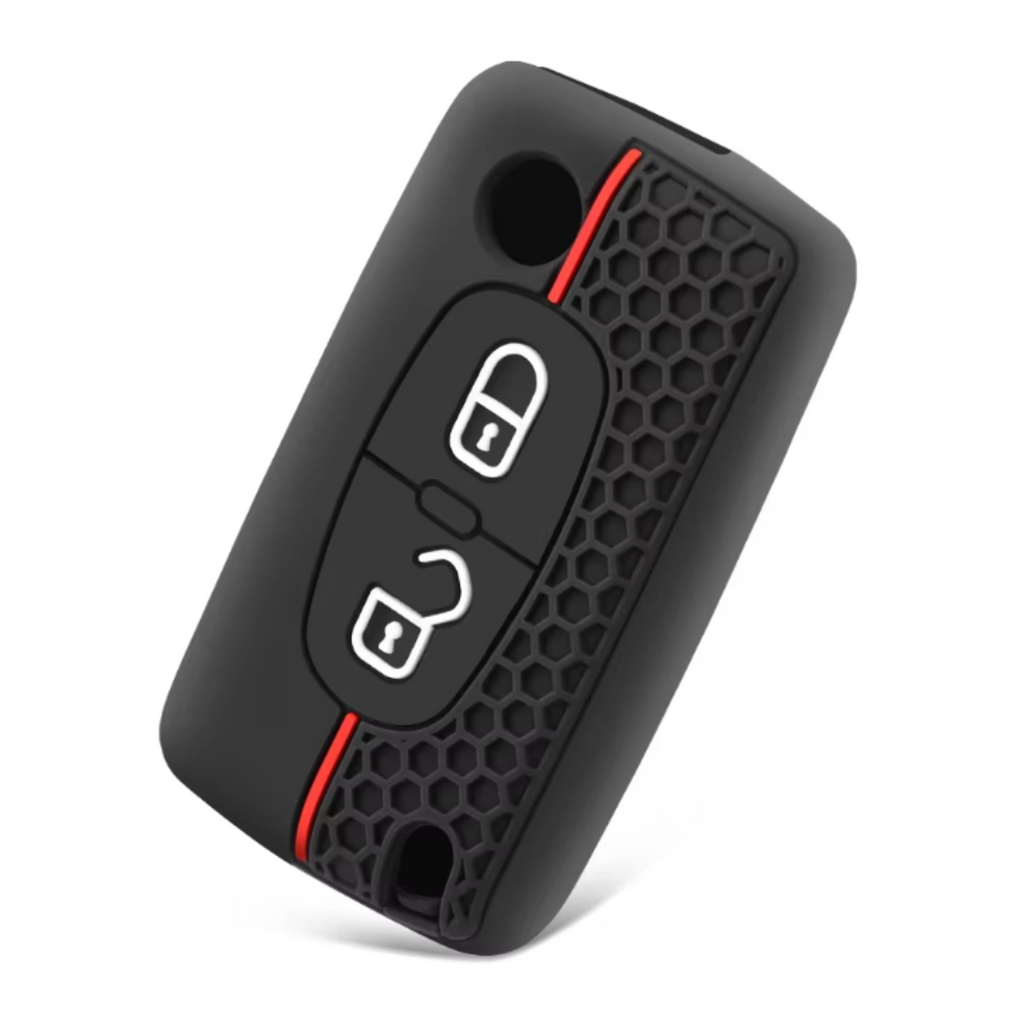 Peugeot 2 gombos szilikon tok Fekete-Piros