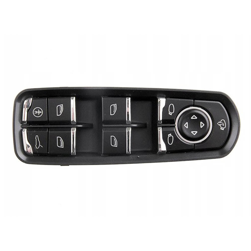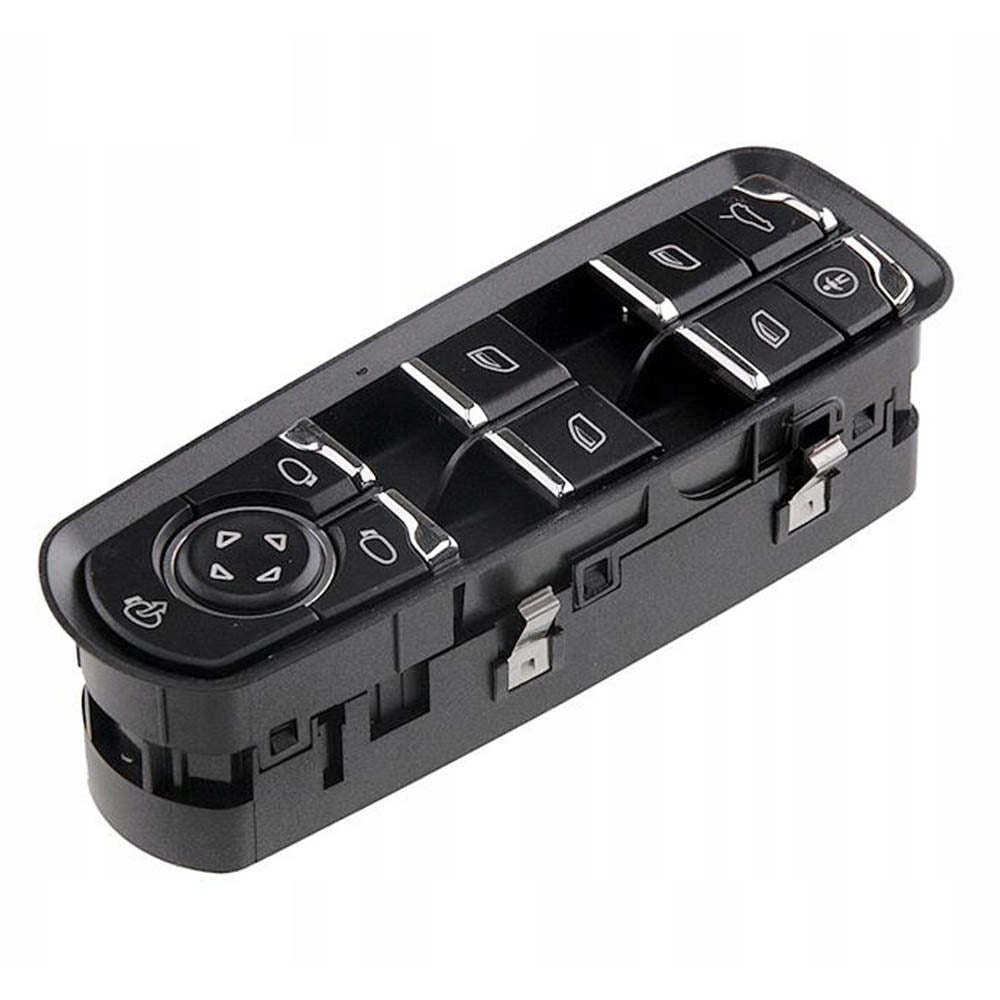 Új, fekete alapszínű a gomboknál króm szegélyű Porsche Macan ablakemelő kapcsoló 2014-től gyártott gépjárművekhez. Elektromos, az első és a hátsó ablakok vezérléséhez egyaránt alkalmazható. Kialakításából adódóan tökéletesen illeszkedik. Gyártási technológiájának köszönhetően strapabíró, illetve időtálló termék.