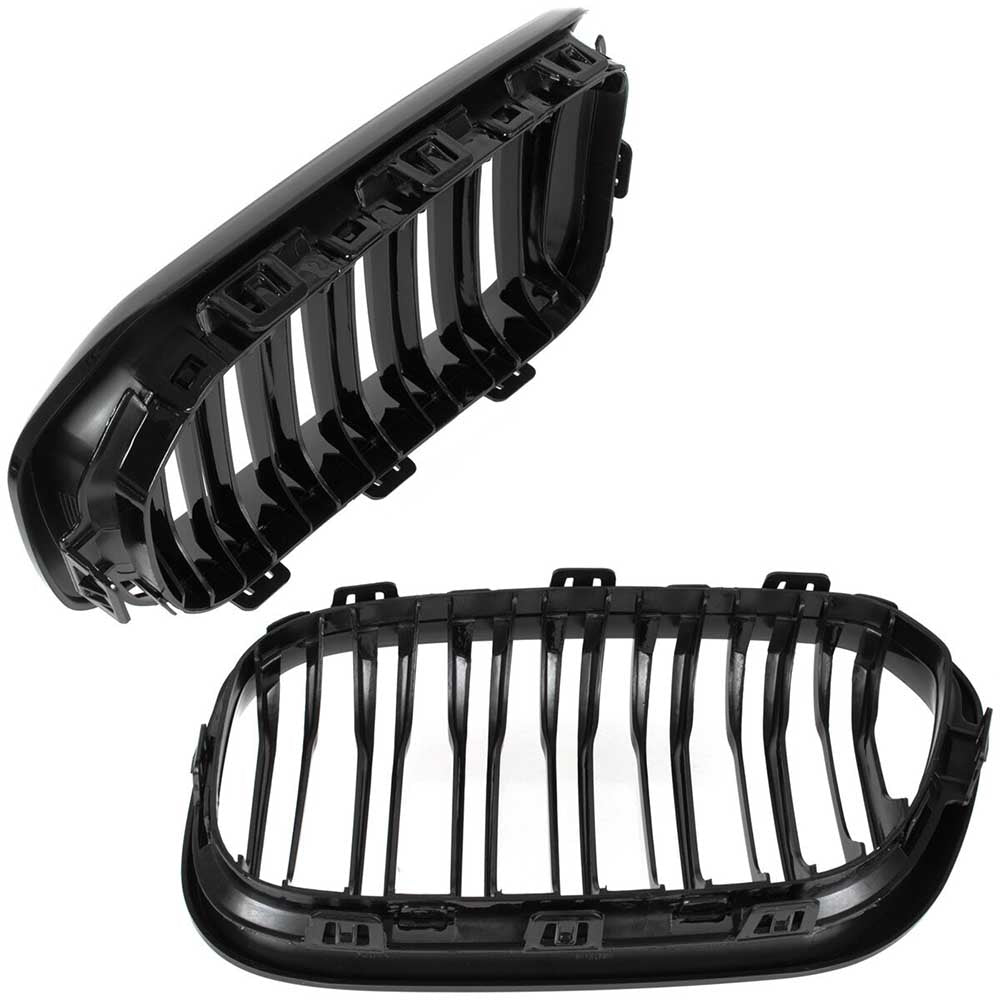 Acest set de grile duble de bară, negre lucioase este proiectat pentru modelele BMW Seria 1 F20, versiunile facelift (LCI) fabricate între 2015 și 2018. Setul include grila rinichi stânga și dreapta, permițând înlocuirea completă a părții frontale a mașinii.