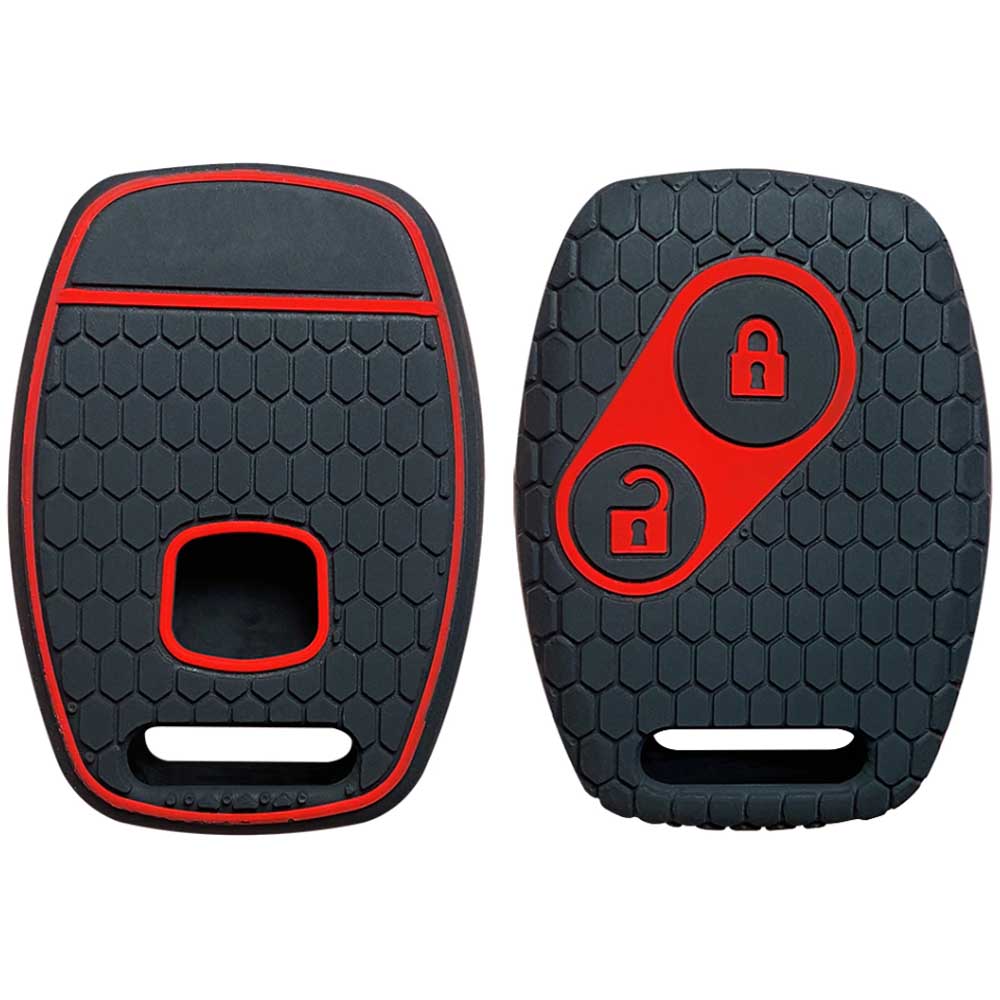 Husă de silicon de înaltă calitate pentru cheie Honda cu 2 butoane, în culorile negru-roșu. Soluție pentru protecția zilnică a cheii tale, oferind în același timp un aspect la modă și elegant, pentru a-ți exprima propriul stil.