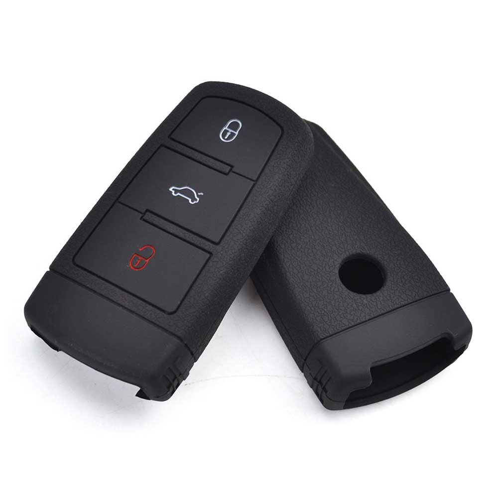 Husă din silicon neagră, cu 3 butoane, pentru cheia auto VW. Soluția pentru protejarea zilnică a cheii tale, oferind în același timp un aspect modern și elegant, pentru a-ți exprima stilul propriu.